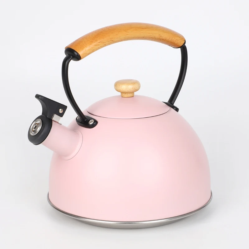 2.5L Color Painting Whistling Kettle With Wooden Handle Stainless Steel Tea Kettle Stove Top Tea Pot